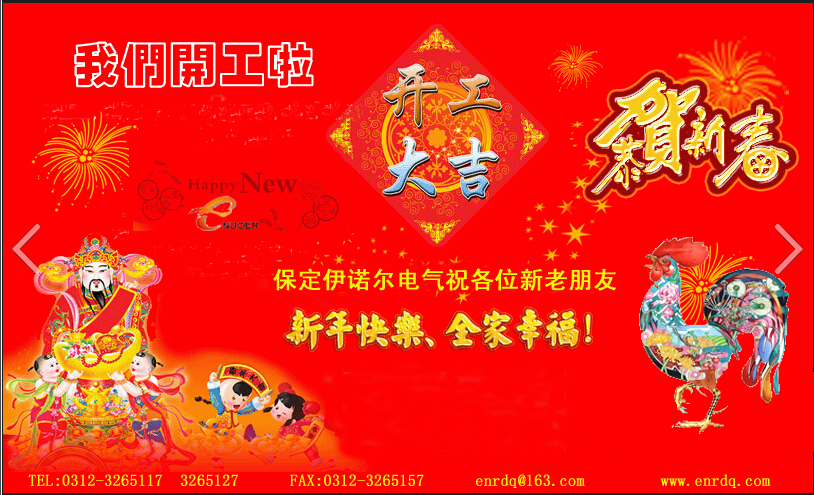 2017年2月4日,農(nóng)歷正月初八,保定伊諾爾電氣正式開工迎客,歡迎新老客戶朋友們來(lái)電來(lái)函垂詢產(chǎn)品,新的一年愿與您攜手共進(jìn),和諧共贏!